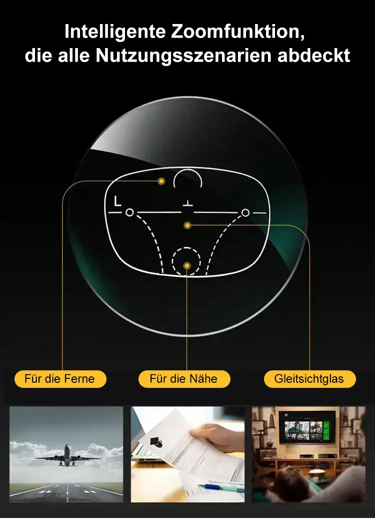 0-1000° Intelligente Zoom-Funktion Blaulicht-blockierende Lesebrille (Unisex)