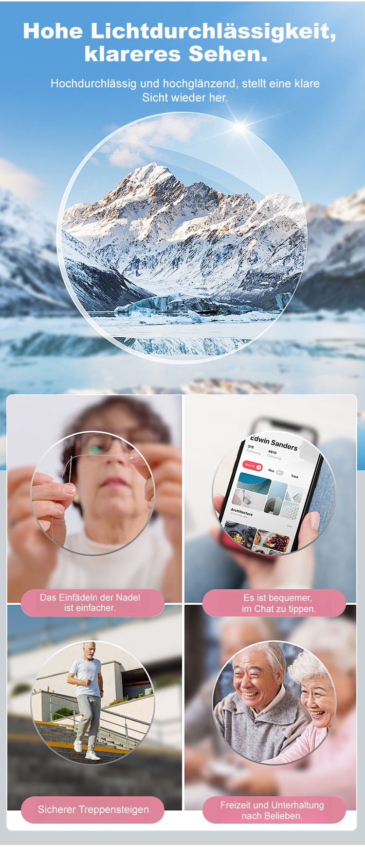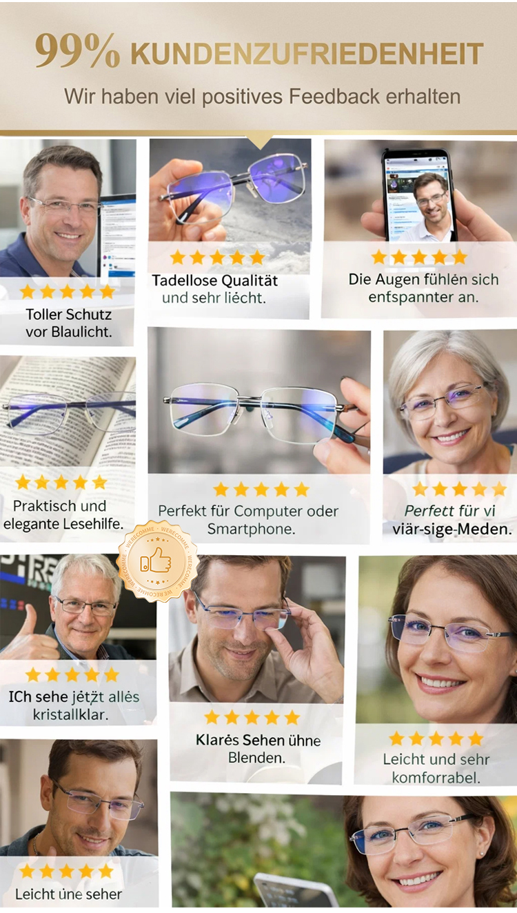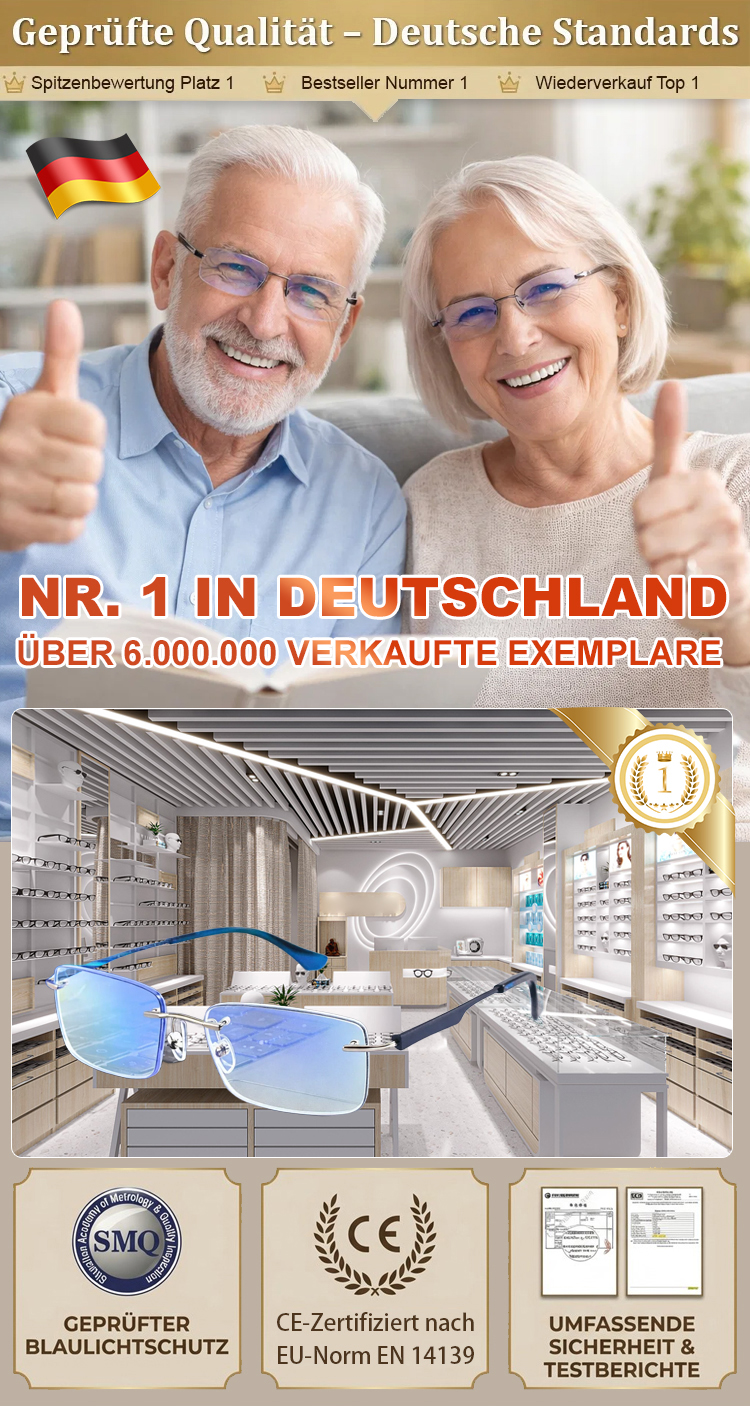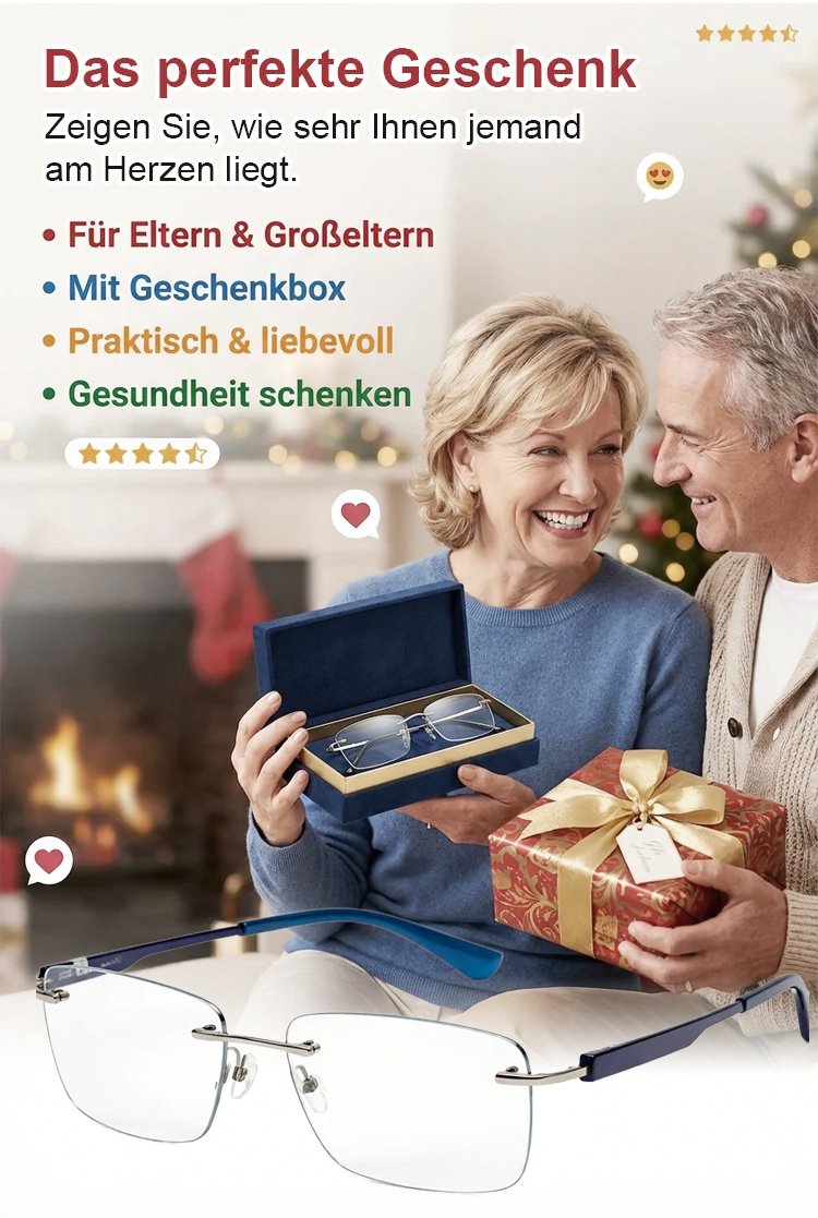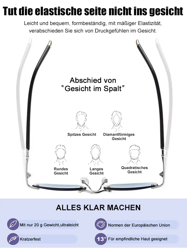 Eine rahmenlose, hochwertige Lesebrille mit diamantgeschliffenen Kanten im klassischen Design, die f