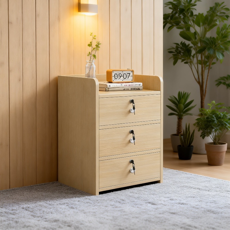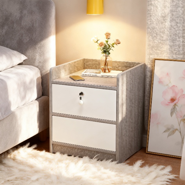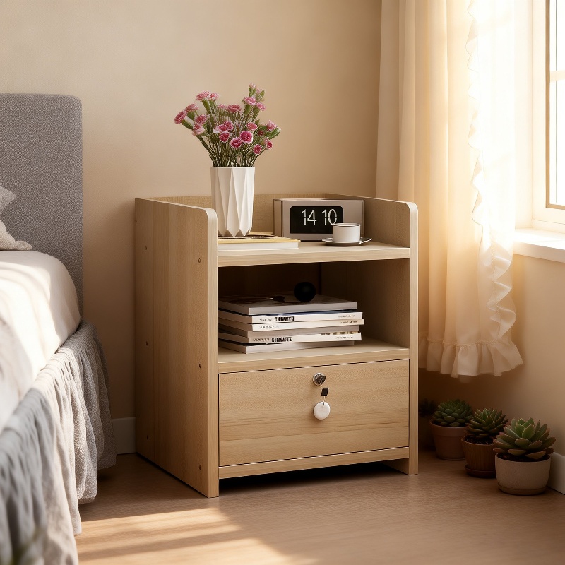 Mesita de noche sencilla con pequeño estante de almacenamiento en un estilo moderno.