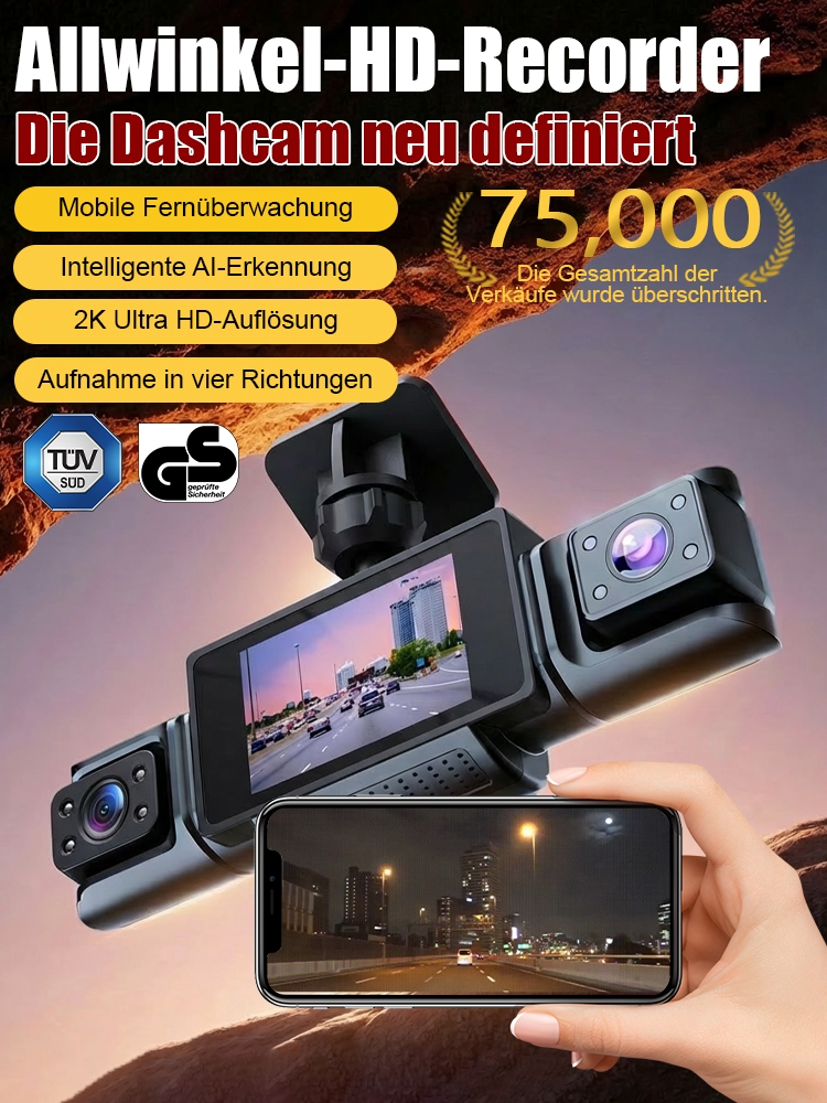 【Keine toten Winkel, 4 Kameras】360-Grad-Weitwinkel-HD-Rekorder
