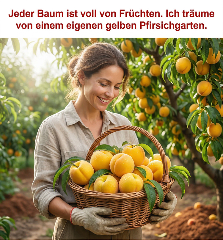 März verpasst? Ein Jahr gewartet! Ernten Sie jetzt saftig-süße Goldpfirsiche im eigenen Garten.